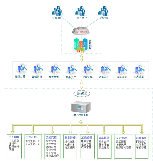 電(dian)子政(zheng)務(wu)辦(ban)公(gong)平臺包括電(dian)子政(zheng)務(wu)辦(ban)公(gong)系統和(he)電(dian)子政(zheng)務(wu)網站兩部分,其中(zhong)電(dian)子政(zheng)務(wu)辦(ban)公(gong)系統又(you)包括:個人(ren)助理(li)、日(ri)常工(gong)作、公(gong)文交流、檔案管理(li)、行政(zheng)事務(wu)、人(ren)力資源、信息(xi)服(fu)務(wu)、系統設置八大主要功能模(mo)塊。