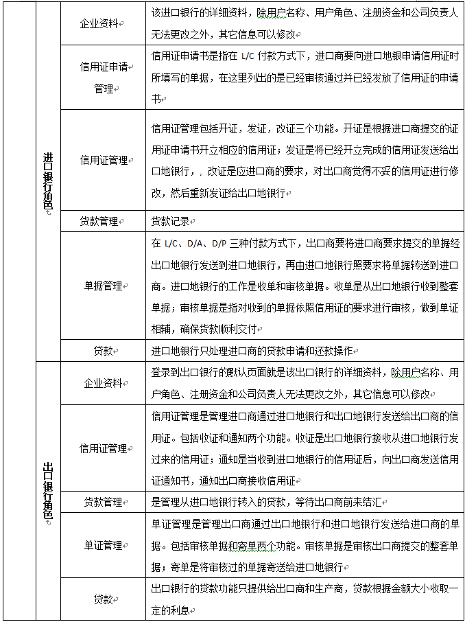 信(xin)用(yong)證管理:信(xin)用(yong)證管理包(bao)括(kuo)開證,發證,改證三個(ge)功能(neng)。開證是根據進口商提(ti)交(jiao)的證用(yong)證申請(qing)書開立相(xiang)應的信(xin)用(yong)證