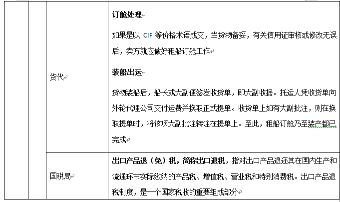 出口(kou)商(shang)、進口(kou)商(shang)、生產商(shang)(工廠)、進口(kou)銀(yin)行(xing)、出口(kou)銀(yin)行(xing)、保險(xian)公司(si)、商(shang)檢(jian)局(ju)、海(hai)關、外匯管理局(ju)、貨代、國稅局(ju)