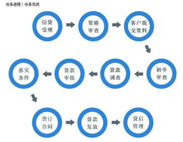 實訓主(zhu)體分五(wu)類流程:短(duan)期(qi)貸(dai)(dai)款(kuan)、長期(qi)貸(dai)(dai)款(kuan)、票(piao)據貼(tie)現、個人(ren)住(zhu)房抵押(ya)貸(dai)(dai)款(kuan)、個人(ren)汽車消費貸(dai)(dai)款(kuan)。提供靈活的業務(wu)流程控制,包括信貸(dai)(dai)受理(li)、資格(ge)審查(cha)、貸(dai)(dai)款(kuan)調查(cha)、貸(dai)(dai)款(kuan)審批、落實條(tiao)件、簽(qian)訂合同、貸(dai)(dai)款(kuan)發放、貸(dai)(dai)后管(guan)理(li)等步(bu)驟。
