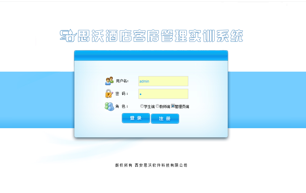將用戶區分為管理員、教師、酒店經營者和客戶四種角色。各角色完成不同的操作任務。 軟件結合現代酒店的日常業務功能,以前廳、客房等十幾大部門的業務操作為基礎,輔助以全國多家酒店的360度全景演示,讓學生不僅可以全方位、多角度的了解現代酒店的各項業務職能以及操作流程、規范,同時切身體驗各大著名酒店的設計風格和理念,使學生可以真實的感受到管理酒店所需要的各種知識與技能并進行實際的操作。