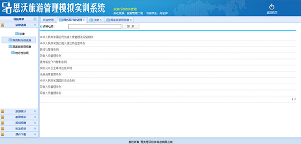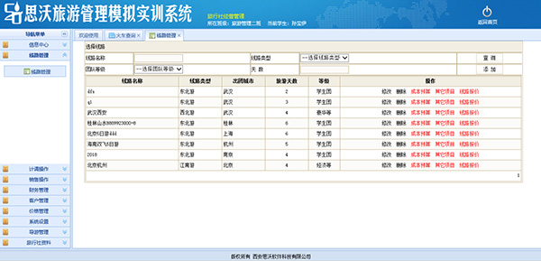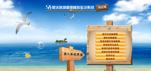 思沃旅(lv)(lv)游(you)管(guan)(guan)(guan)(guan)理(li)(li)(li)(li)模(mo)擬實(shi)(shi)(shi)訓(xun)系(xi)統(tong)分(fen)為模(mo)擬操(cao)作(zuo)和旅(lv)(lv)游(you)知識(shi)練習(xi)兩大模(mo)塊(kuai),涵蓋旅(lv)(lv)行(xing)(xing)社(she)業的(de)(de)(de)分(fen)銷(xiao)、操(cao)作(zuo)、結算、統(tong)計分(fen)析等各大業務模(mo)塊(kuai),該實(shi)(shi)(shi)訓(xun)教(jiao)學(xue)平臺軟件具備團隊計劃、旅(lv)(lv)游(you)預(yu)訂(ding)(ding)、客房(fang)預(yu)訂(ding)(ding)、機票預(yu)訂(ding)(ding)、景點門票預(yu)訂(ding)(ding)、團餐預(yu)訂(ding)(ding)、車(che)輛(liang)預(yu)訂(ding)(ding)、收付款管(guan)(guan)(guan)(guan)理(li)(li)(li)(li)、供(gong)應(ying)商、團隊客戶、VIP散(san)客管(guan)(guan)(guan)(guan)理(li)(li)(li)(li)等功能(neng)。從旅(lv)(lv)行(xing)(xing)社(she)經營(ying)管(guan)(guan)(guan)(guan)理(li)(li)(li)(li)、酒(jiu)店經營(ying)管(guan)(guan)(guan)(guan)理(li)(li)(li)(li)、旅(lv)(lv)游(you)資源開(kai)發(fa)與(yu)(yu)管(guan)(guan)(guan)(guan)理(li)(li)(li)(li)、旅(lv)(lv)游(you)行(xing)(xing)政管(guan)(guan)(guan)(guan)理(li)(li)(li)(li)、導游(you)實(shi)(shi)(shi)務與(yu)(yu)技(ji)巧五個方(fang)面(mian)讓學(xue)生(sheng)參(can)與(yu)(yu)旅(lv)(lv)游(you)管(guan)(guan)(guan)(guan)理(li)(li)(li)(li)的(de)(de)(de)模(mo)擬操(cao)作(zuo),每個方(fang)面(mian)又細(xi)分(fen)為實(shi)(shi)(shi)際流(liu)程中涉及的(de)(de)(de)每個細(xi)節,因此,學(xue)生(sheng)可以從中學(xue)習(xi)到旅(lv)(lv)游(you)管(guan)(guan)(guan)(guan)理(li)(li)(li)(li)的(de)(de)(de)全面(mian)的(de)(de)(de)操(cao)作(zuo)流(liu)程。此外,軟件中教(jiao)師端對應(ying)的(de)(de)(de)實(shi)(shi)(shi)驗設(she)置,讓教(jiao)師可以方(fang)便地為學(xue)生(sheng)設(she)置實(shi)(shi)(shi)驗的(de)(de)(de)不同因素,同時,教(jiao)師還可以查看學(xue)生(sheng)的(de)(de)(de)操(cao)作(zuo)結果,從而(er)能(neng)夠對學(xue)生(sheng)的(de)(de)(de)實(shi)(shi)(shi)驗進行(xing)(xing)評價(jia)。教(jiao)學(xue)軟件系(xi)統(tong)的(de)(de)(de)使用可以提(ti)高學(xue)生(sheng)的(de)(de)(de)學(xue)習(xi)興趣,同時也為教(jiao)師減輕工作(zuo)負擔(dan)。本公司為了更好滿足高校的(de)(de)(de)教(jiao)學(xue)需(xu)求,會(hui)根據(ju)高校的(de)(de)(de)需(xu)求提(ti)供(gong)旅(lv)(lv)游(you)管(guan)(guan)(guan)(guan)理(li)(li)(li)(li)實(shi)(shi)(shi)訓(xun)室解(jie)決方(fang)案(an)。