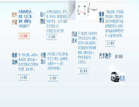 系(xi)(xi)(xi)統內(nei)置(zhi)全(quan)面的汽(qi)車(che)視(shi)頻介(jie)紹,教師可利(li)用這些視(shi)頻材(cai)料讓(rang)學生進(jin)行(xing)理論課的鞏固以(yi)及拓展。介(jie)紹內(nei)容包(bao)括:汽(qi)車(che)史話、發動(dong)機概述、曲柄連桿(gan)結構、配氣機構、潤滑(hua)系(xi)(xi)(xi)統、冷卻系(xi)(xi)(xi)統、點火(huo)系(xi)(xi)(xi)統、起動(dong)系(xi)(xi)(xi)統、汽(qi)油(you)供給系(xi)(xi)(xi)統、柴油(you)燃料供給系(xi)(xi)(xi)統、傳動(dong)系(xi)(xi)(xi)統、行(xing)駛系(xi)(xi)(xi)統、轉向系(xi)(xi)(xi)統、制動(dong)系(xi)(xi)(xi)統、汽(qi)車(che)車(che)身、電氣設備。